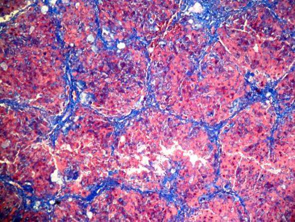 Masson染色时胶原纤维呈蓝色(被苯胺蓝所染),肌纤维呈红色(被酸性品红和丽春红所染),这与阴离子染料分子的大小和组织的渗透性有关。