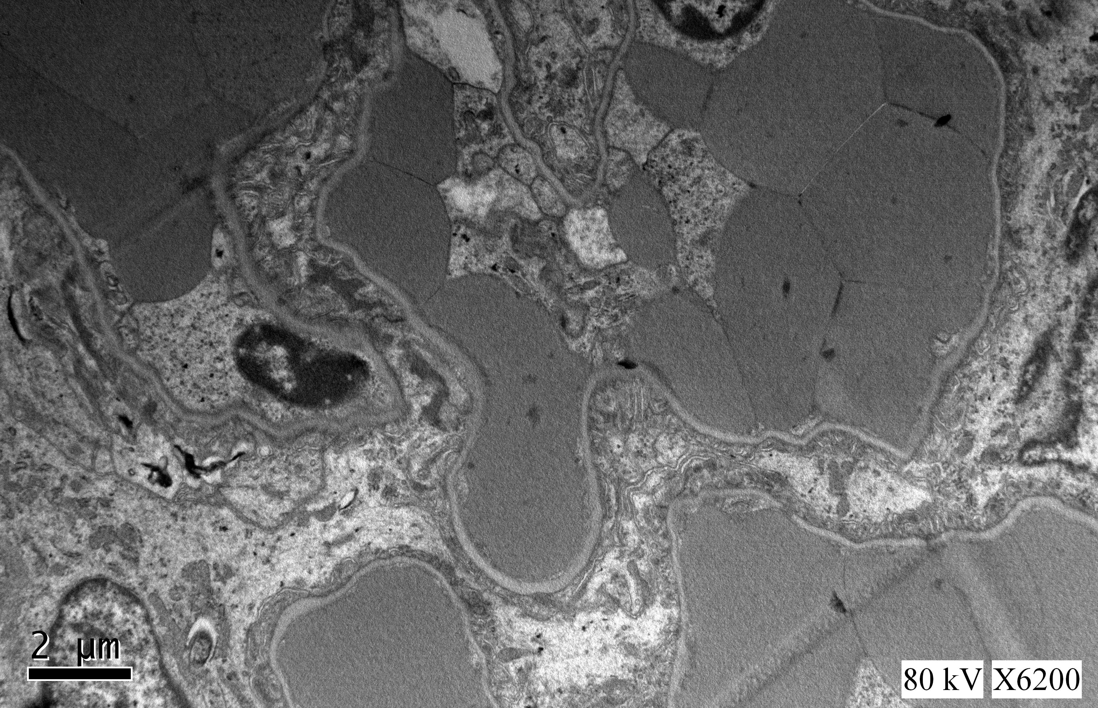扫描电镜标本经戊二醛和饿酸双重固定,乙醇逐级脱水,CO2临界点干燥,真空喷金,扫描电镜观察