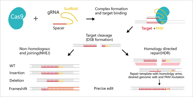 CRISPR/Cas9提高了基因编辑的准确性和特异性,使以前不可能开展的实验成为可能。它的效率是传统ZFN和TALEN系统的三到四倍。而且,只需导入几个不同的引导RNA,即可删除多个基因。该技术已广泛用于构建敲除细胞系,在这类细胞系中,靶标基因可以精确删除,从而完全去除其编码的蛋白质。根据不同细胞特点选择适宜的转染方法(病毒法,化学转染法或电转法)将gRNA序列和Cas9蛋白转入细胞中,并根据不同的转染方法进行不同时长的药筛。药筛完成后进行单克隆筛选,通过靶位点扩增及测序验证筛选出成功敲除的阳性克隆,最终交付纯合子细胞株与相关数据报告。