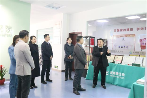 2024年3月21日,九龙坡区政协宋泓主席一行莅临威斯腾生物,走访调研区政协委员企业,了解委员企业发展情况。区政协邹宏举秘书长、联络委邹彦主任、二郎街道办事处余立主任陪同走访。九龙坡区政协委员、威斯腾生物董事长周勇,携公司主要成员热情接待,陪同宋主席一行观看了威斯腾生物企业宣传片,参观了威斯腾生物专利墙、文化长廊、转化研究院及实验基地。